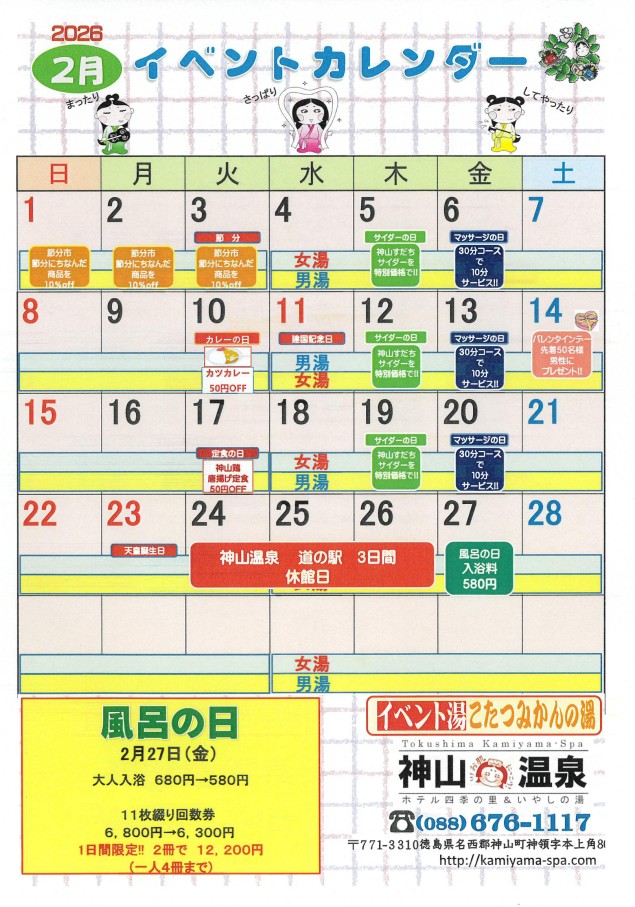 温泉お風呂スケジュール