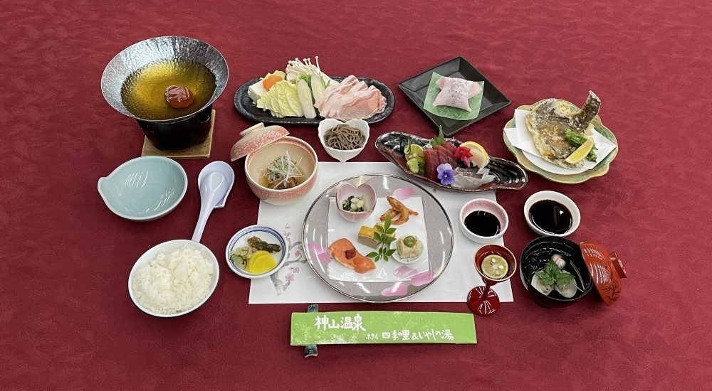 季節の味覚満載の「神山の恵み山彩膳」をご賞味いただける一泊二食付プランです。
